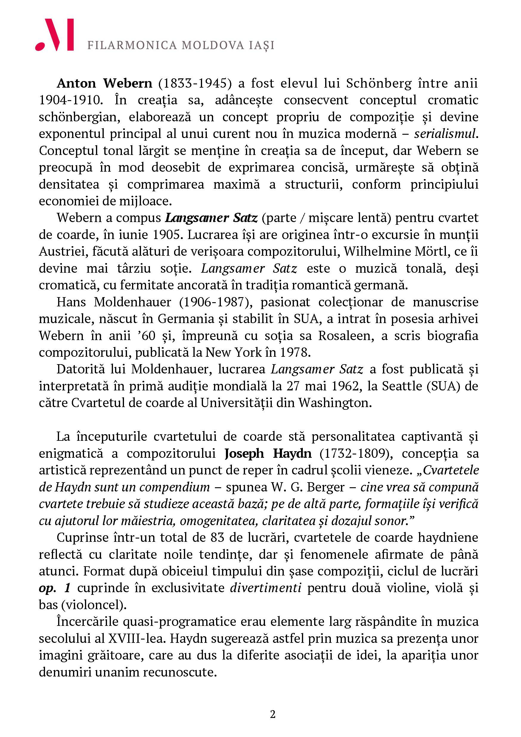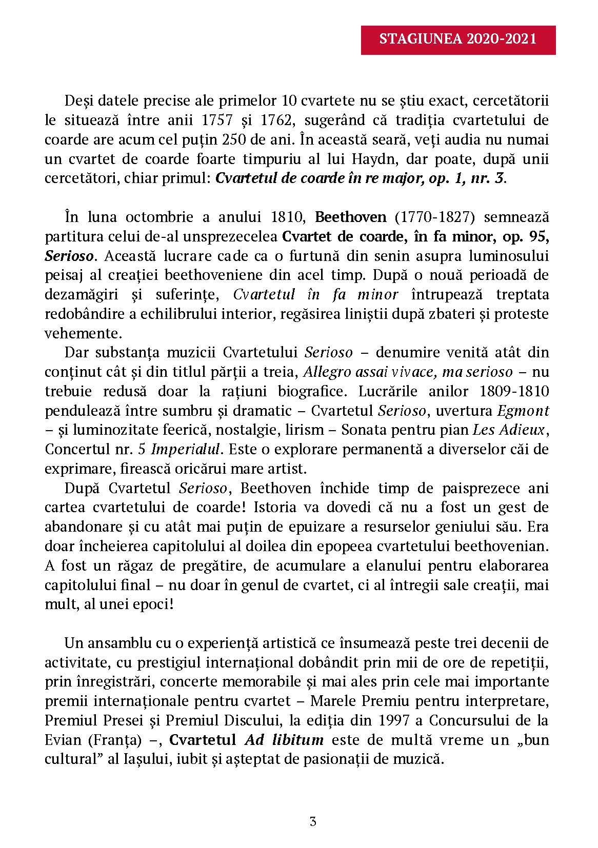 J. Haydn – Cvartetul în re major, op. 1 nr. 3