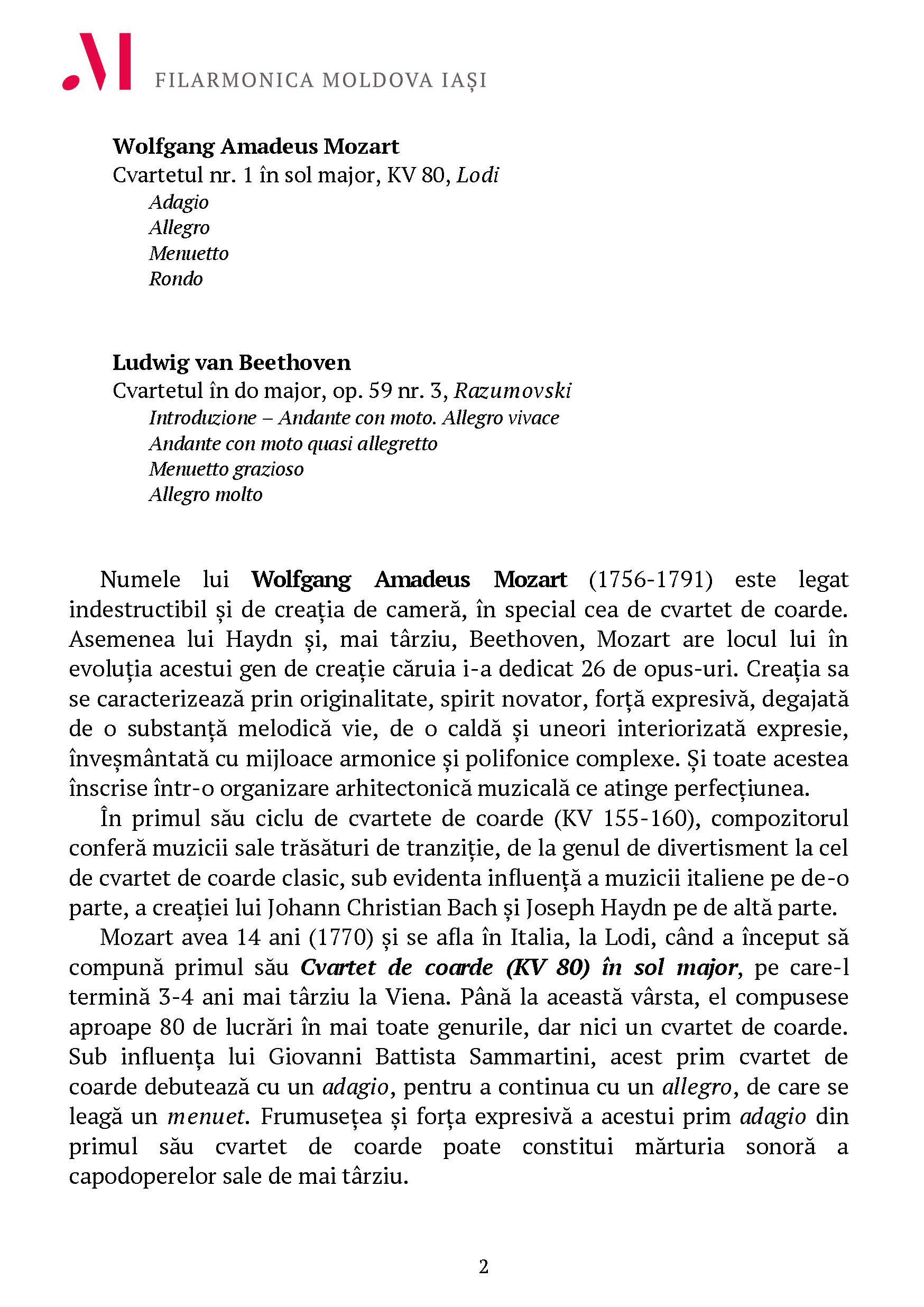 W. A. Mozart – Cvartetul nr. 1 în sol major, KV 80, Lodi