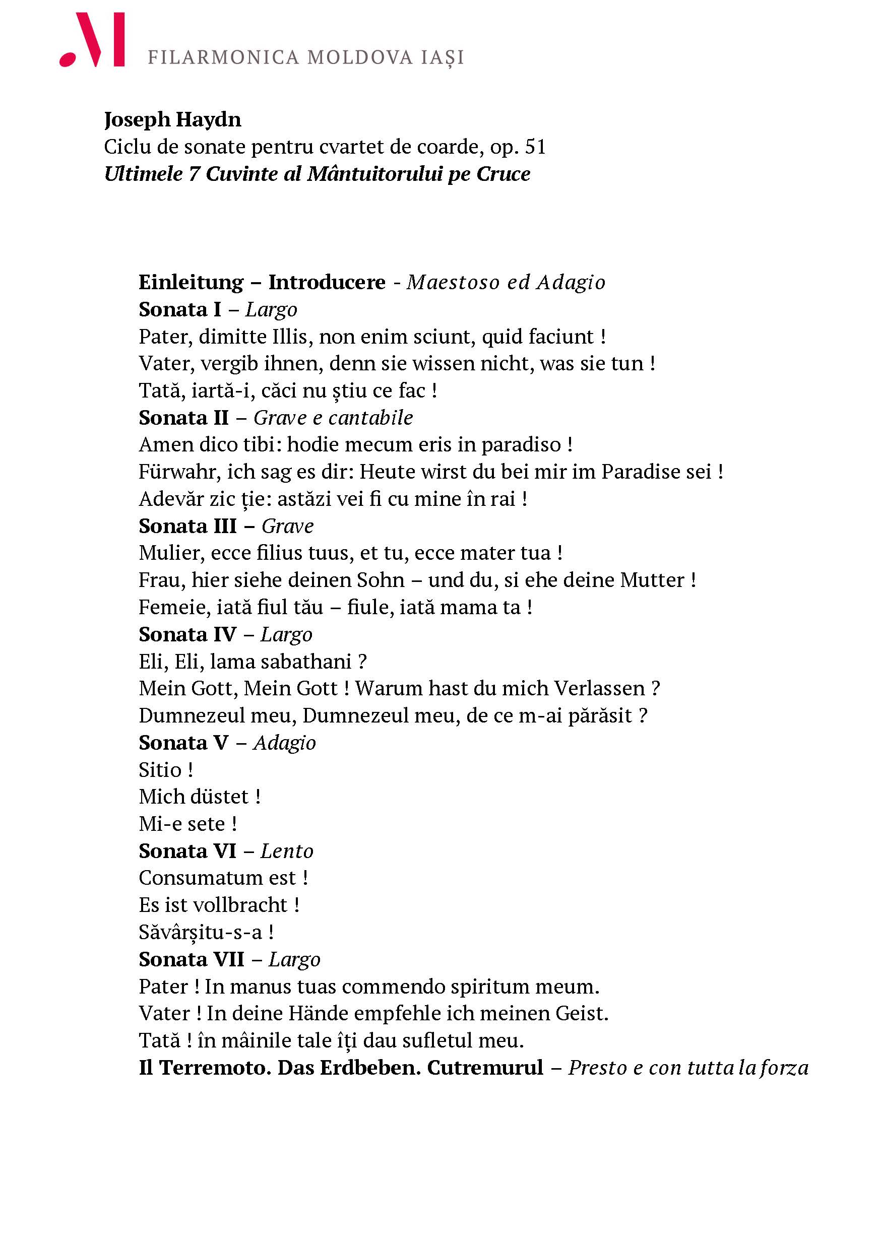 Joseph Haydn - „Ultimele şapte cuvinte ale Mântuitorului pe Cruce”, Ciclul de sonate pentru cvartet de coarde op. 51