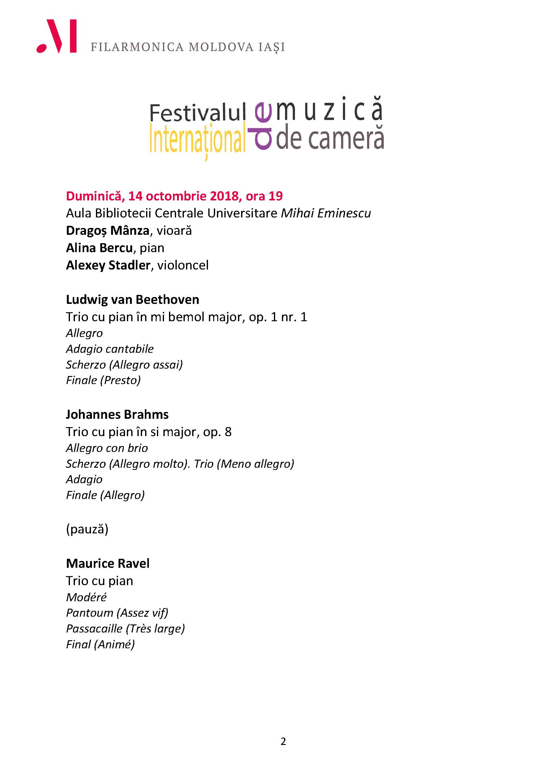 - L. van Beethoven – Trio cu pian în mi bemol major, op. 1 nr. 1
