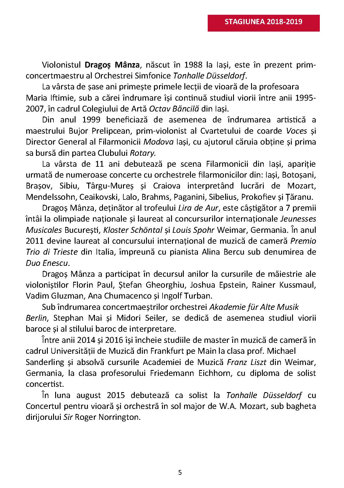 Soliști: Dragoș Mânza, vioară