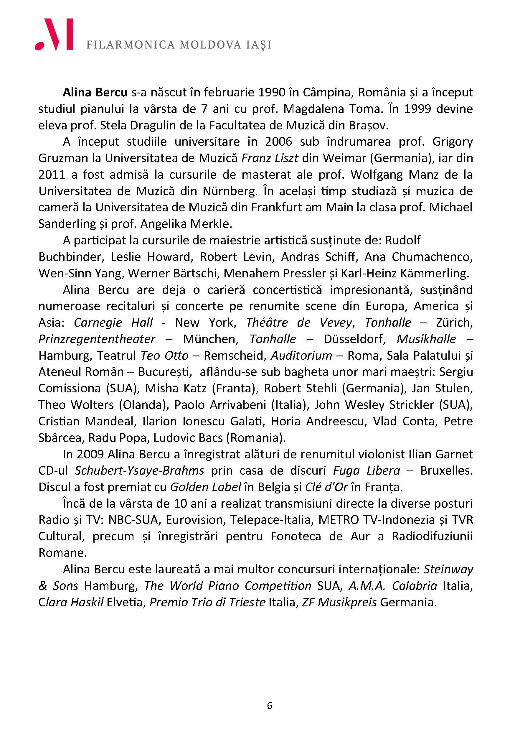 Alina Bercu, pian