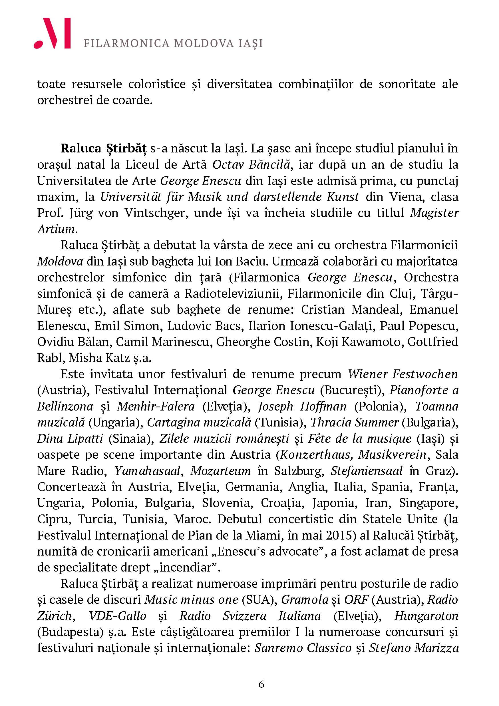 Solistă: Raluca Știrbăț, pian