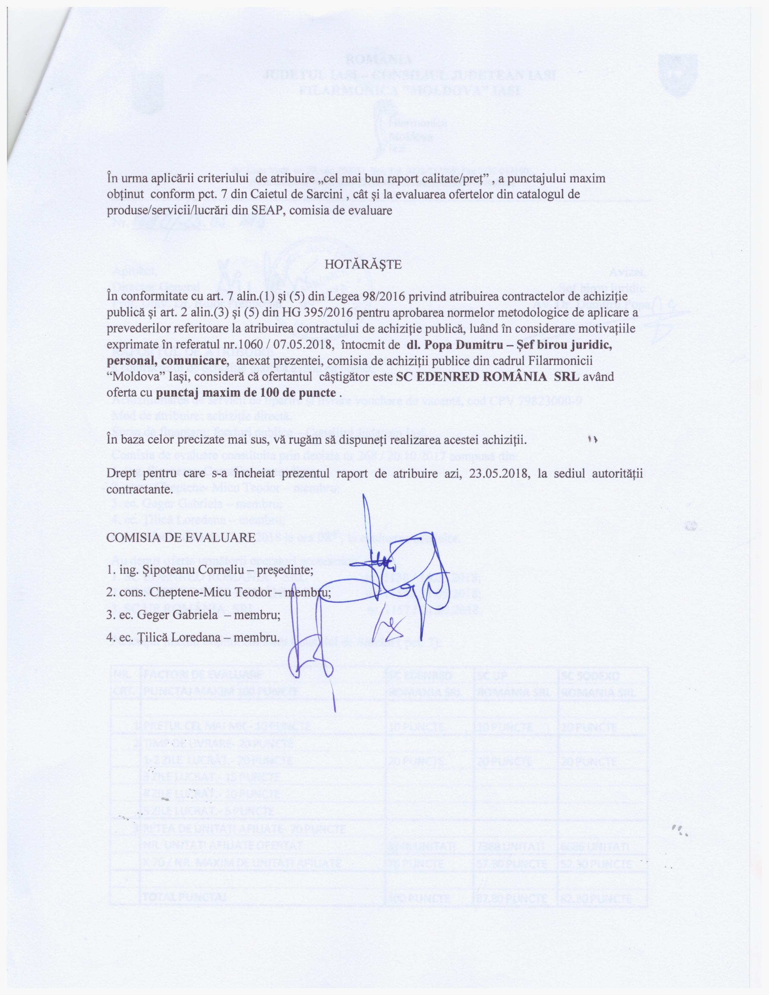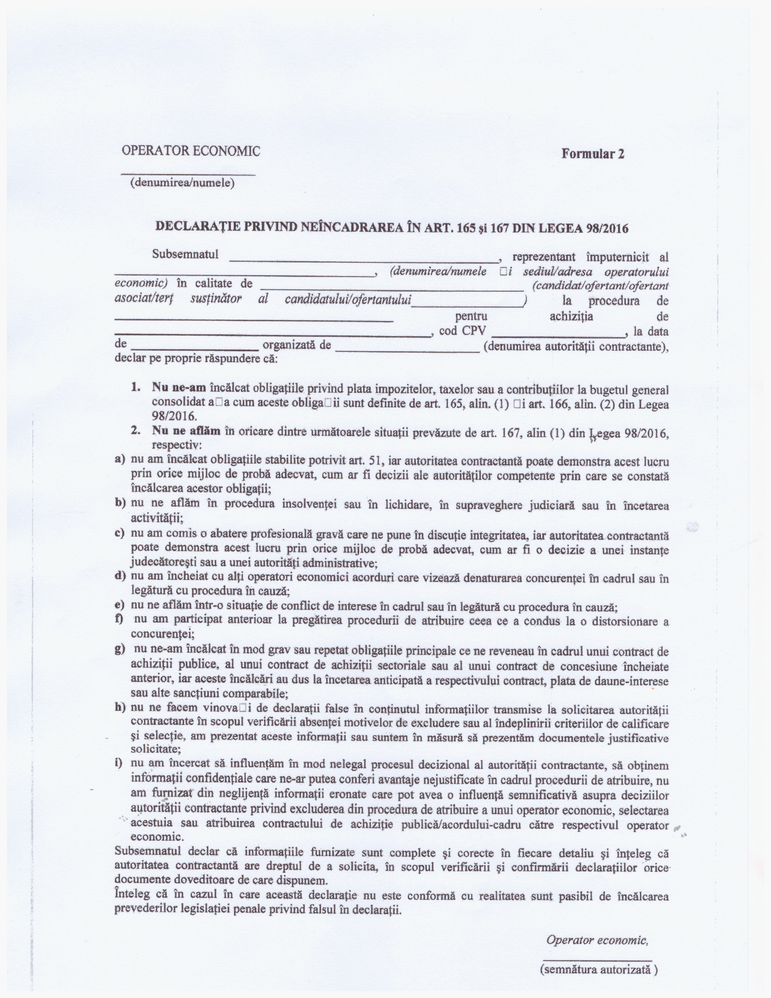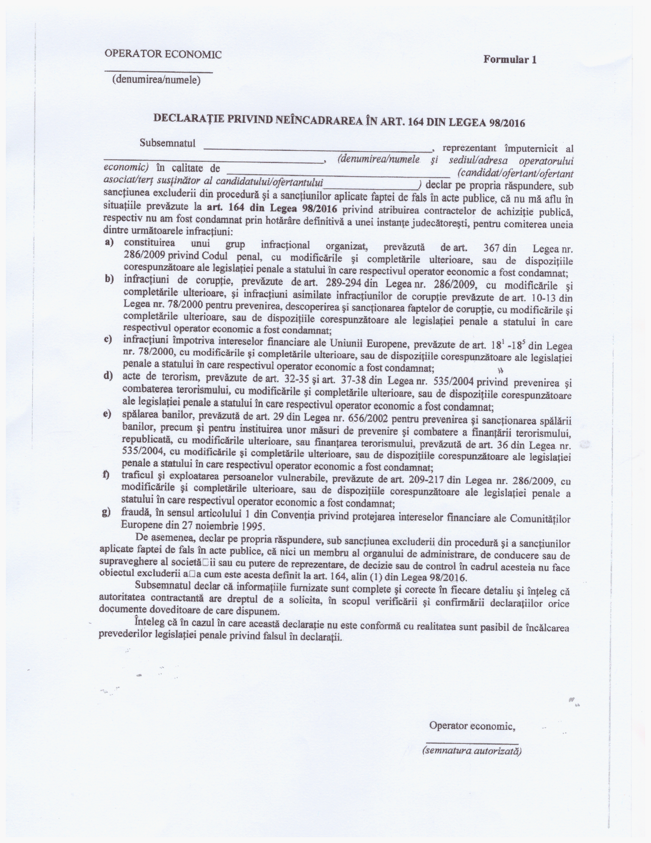 Termen de depunere a ofertelor detaliate conform Caietului de sarcini atasat cat si a formularelor atasate - la registratura - 21.05.2018, ora 16.