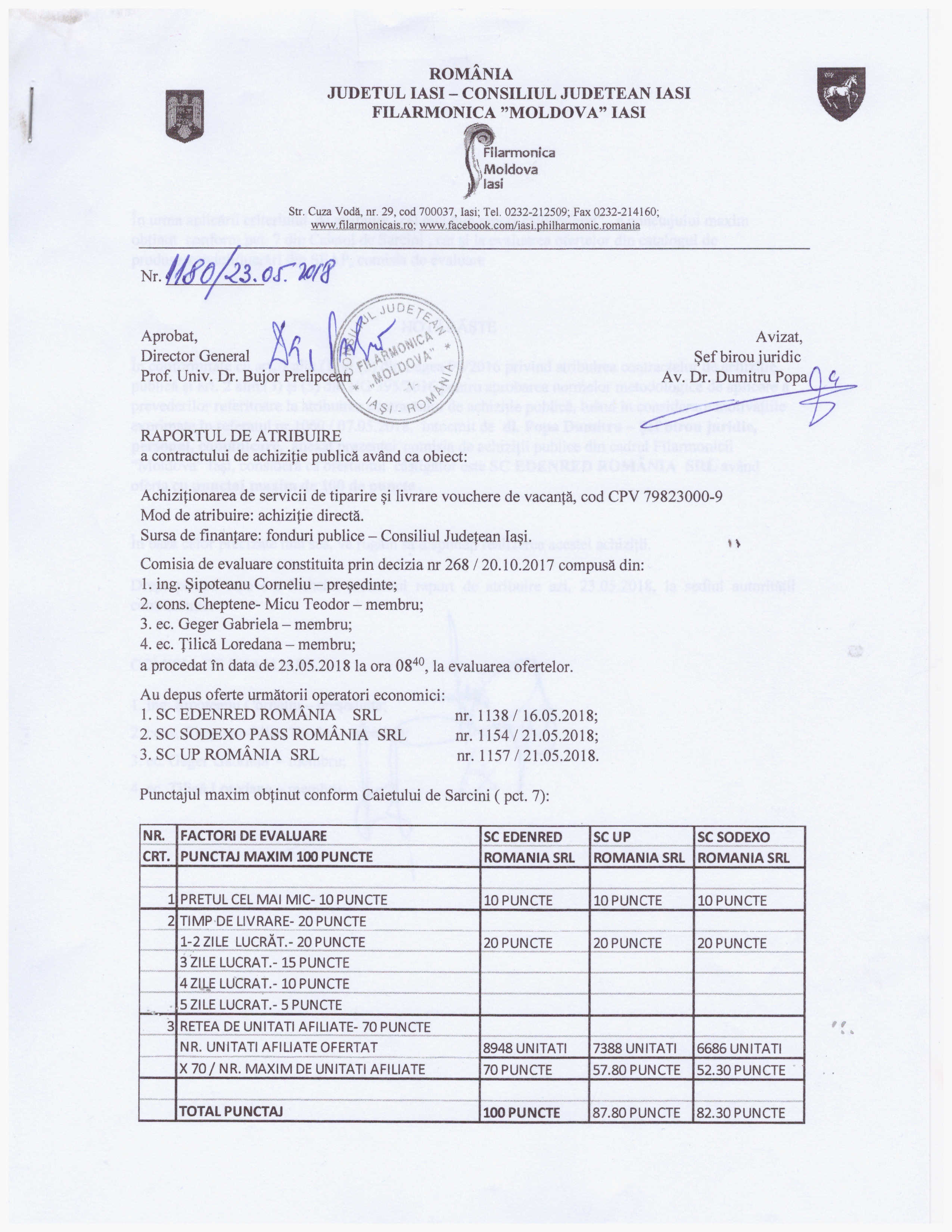 Filarmonica Moldova Iasi achizitioneaza servicii de tiparire si livrare vouchere de vacanta pentru un numar maxim de 5000 de bucati cu o valoare nominala de 50 de lei fiecare.